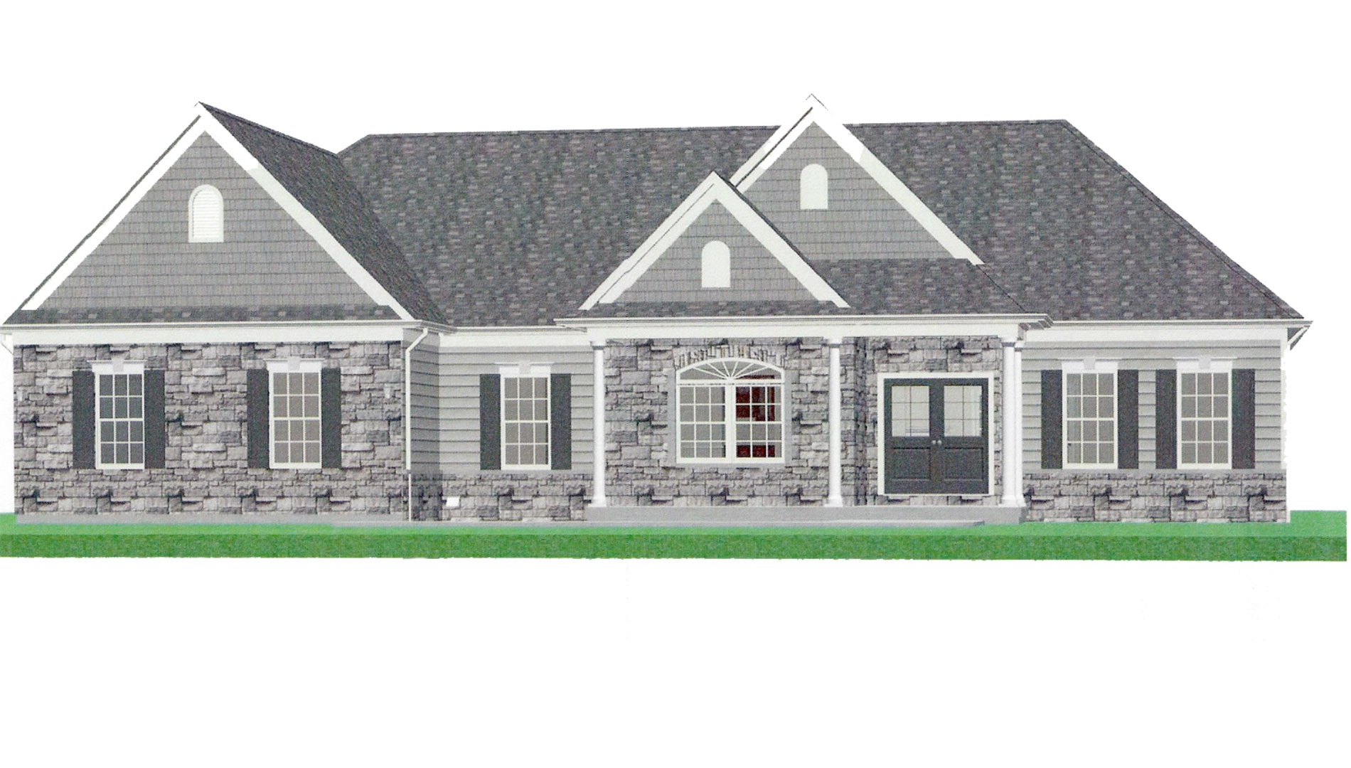 The Easton features a two car front entry garage, 3 Bedrooms, 1.5 Baths, a spacious Great Room, Kitchen with Breakfast Area, a Formal Dining Room, and a covered porch.